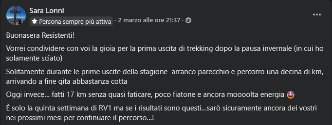 In sole 6 settimane di allenamento con RV ha trasformato la fatica in piacere e il cammino dei Borghi Silenti in un'esperienza che non dimenticherà.